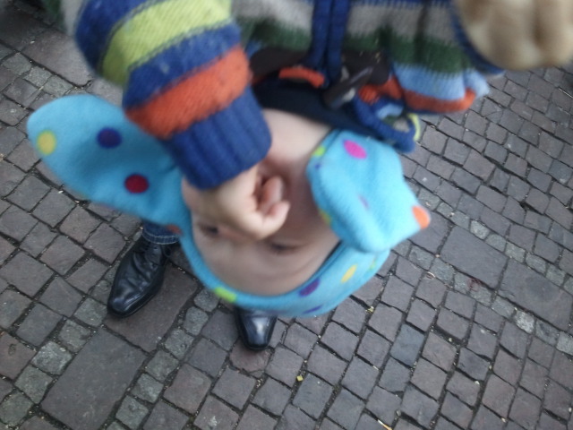 Aber nun will ich Euch Fotos nicht vorenthalten. Da der Kleine bei der ersten Anprobe "not amused" war, musste ich Fotos während des Weihnachtsmarkt-Besuches machen - also nur mäßige Qualität...