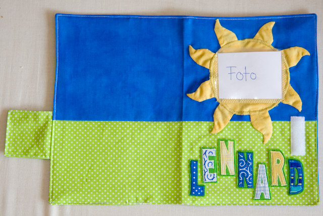 Dieses Heft ist für einen kleinen Sonnenschein. Die Besonderheit dieser U-Heft-Hülle besteht darin, dass auf der Sonne ein Sichtfenster angebracht ist, in das zum Beispiel ein Foto des Kindes eingeschoben werden kann.