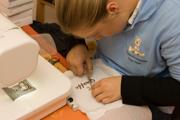 | | Unser neuestes Familienmitglied ist einige Kilo schwer, passt gut in meine Arme und macht kleine, niedliche Geräusche. Ihr Name ist Janome 200 E, klingt merkwürdig, deshalb nenne ich sie Sticki. Sticki ist eine kleine aber feine Stickmaschine mit einem Rahmen von 14 x 14 cm. Sie spricht nur englisch, ich habe sie direkt aus England adoptiert, aber wir zwei kommen super miteinander aus.