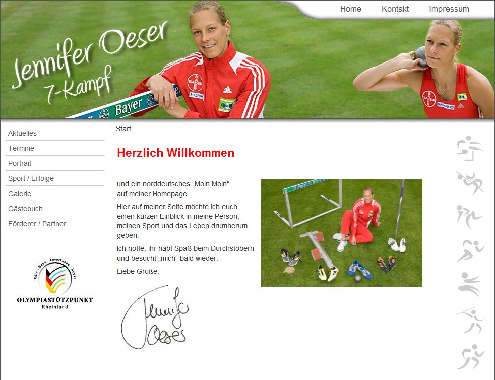 | | Ein kleines bisschen Werbung zu meinem letzten Projekt. Hier die Ankündigung zur neuen Webseite von Siebenkampf-Vizeweltmeisterin Jennifer Oeser.