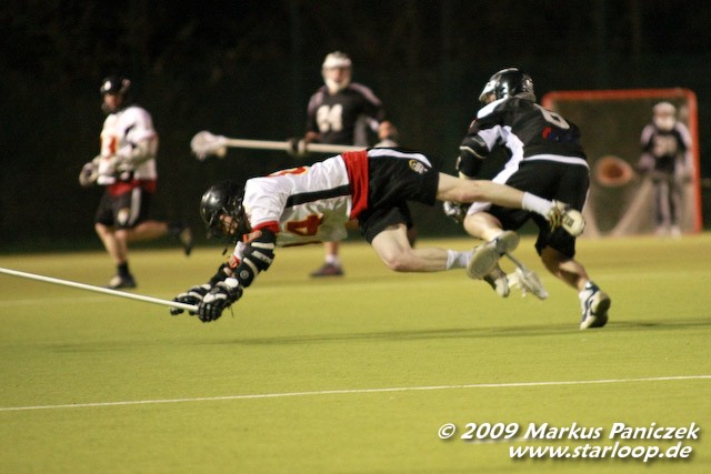 | | Mit einem deutlichen 18:6-Erfolg des Tabellenführers DSC 1899 gegen den Liga-Fünften Marburg Saints machen die Düsseldorfer Lacrosse-Herren einen weiteren Schritt in Richtung Verteidigung des Westdeutschen Meistertitels. Zwar liegt das Team um Trainer Florian Kriependorf in der Bundesliga West nun mit 18 Zählern drei Punkte vor den größten Konkurrenten aus Aachen, doch kann die Mannschaft des FC Inde Hahn mit einem Sieg gegen Mainz wieder mit den Landeshauptstädtern gleichziehen. Am 25.04.09 kommt es beim nächsten Heimspiel des DSC zum direkten Aufeinandertreffen der beiden Spitzenmannschaften.