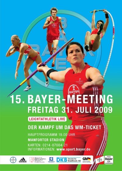 Schwer wird es auch für Alexander Straub (LG Filstal), der sich im Parkstadion durchsetzen konnte, denn in nur wenigen Disziplinen ist die Leistungsdichte in Deutschland so eng, wie im Stabhochsprung. Zuletzt gewann er mit 5,60 Metern vor dem höhengleichen Leverkusener Malte Mohr. Auch an der Spitze der Deutschen Bestenliste trennt die beiden Athleten, die gemeinsam zur WM nach Berlin fahren, nur einen Zentimeter (Straub: 5,81 m; Mohr: 5,80 m). So will Mohr auf der eigenen Sportanlage alles daran setzen, dass er am Ende triumphiert. Bei den Frauen ist die gesamte deutsche Springerspitze am Start. Angeführt werden die weiblichen Stabartisten von Silke Spiegelburg, die in Ulm ihre fünfte nationale Meisterschaft holte. Die DM-Revanche will Hammerwerfer Markus Esser. Der Lokalmatador trifft auf den Frankfurter Sergej Litvinov, der dem Leverkusener mit nur acht Zentimetern den Titel vor der Nase wegschnappte. Neben den Einladungswettkämpfen des Hauptprogramms besteht noch bis Freitag (24.07.) die Möglichkeit, sich für die Wettbewerbe des Vorprogramms anzumelden. Die erforderlichen Mindestleistungen sind dem Internet unter www.tsvbayer04-leichtathletik.de zu entnehmen. Das Startgeld beträgt für Erwachse acht Euro und für Jugendliche fünf Euro. Das Vorprogramm beginnt um 17 Uhr und um 19 Uhr geht es nahtlos mit dem Hauptprogramm weiter. Sitzplatzkarten kosten 13 Euro, Steh- sowie ermäßigte Sitzplätze acht Euro und ermäßigte Stehplätze gibt es für fünf Euro. Die Karten können in der Leichtathletik-Geschäftsstelle unter Telefon 0214 / 87604 -21 sowie per Mail