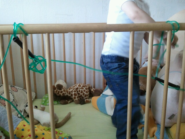 Mein Kind hat sich ein Haus gebastelt. Er nennt es zumindest so. Er liebt es, sein Haus mit dem Seil auf und zu zu machen.