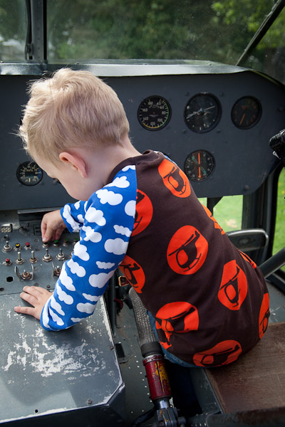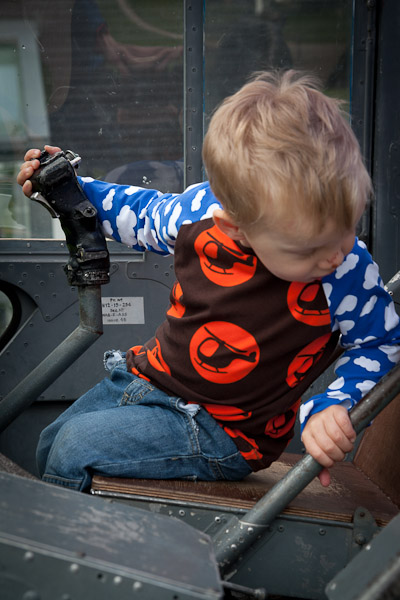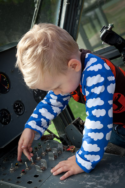 Für die Fotos sind wir zu einer Flugzeugausstellung gefahren. Dort gab es neben ausgestellten ausgrangierten Flugzeugen (quasi zum Anfassen) und Hubschraubern auch einen Helikopter zum reinsetzen und ausprobieren. Das war das Highlight für Jonas, alle Knöpfe mussten einmal gedrückt, alle Regler gezogen und alle Schalter gekippt werden. Er war gar nicht mehr weg zu bewegen und zu Fotos war er schon mal gar nicht aufgelegt.