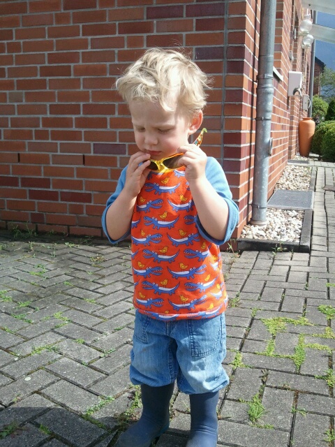 Allerdings muss ich heute etwas zeigen, dass nicht ich genäht habe. Das süße Shirt war in den letzten (kalten) Sommertagen häufig in Gebrauch. Aber ich hoffe, dass Franzi mir nicht böse ist, wenn ich sage, dass ich Noah am liebsten jetzt kurzärmlige Shirts anziehen würde... Der Sommer muss endlich mal kommen!!