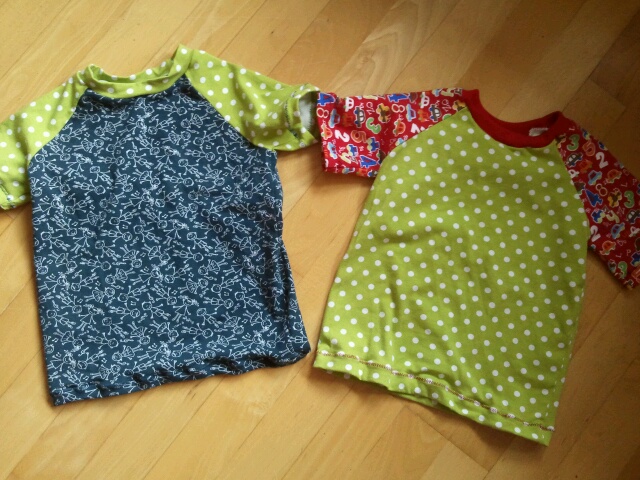 Doch gestern Abend habe ich mich hingesetzt und angefangen, eben genau dies zu tun. Fertig geworden sind 3 Kurzarm-Shirts (hatte ich zugeschnitten, als der Sommer noch versprach ein Sommer zu werden) ein Langarm-Shirt (es gibt noch ein zweites, aber bei dem gefällt mir plötzlich die Farbkombination nicht mehr...) und ein Schlafanzug.