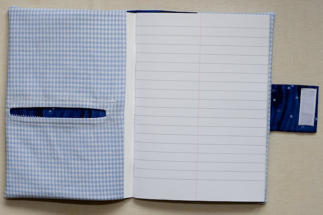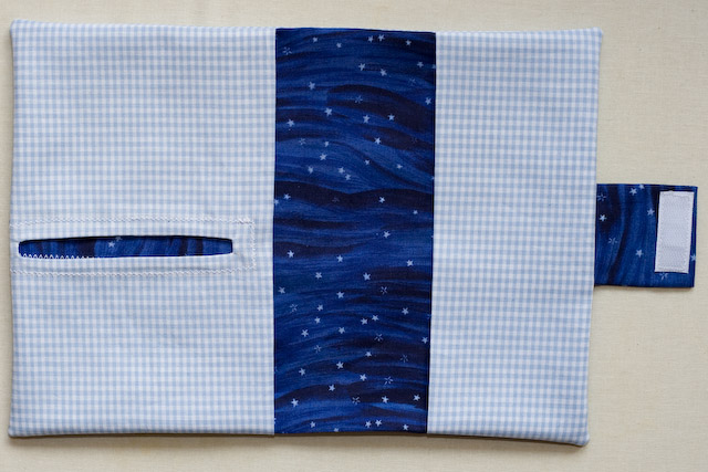 U-Heft-Hülle FroschkönigNach der Schnecke taucht auch das Motiv des Froschkönigs bereits zum zweiten Mal auf. Wie an den beiden Blautönen leicht zu erkennen ist, ist diese Hülle im Gegensatz zur ersten für einen Jungen gemacht. Das Webband mit der Aufschrift "the frog king" umfasst dem Umschlag einmal und passt zur Applikation. Diese ist, anders als beim ersten Froschkönig, mit der Nähmaschine und nicht mit der Hand appliziert.