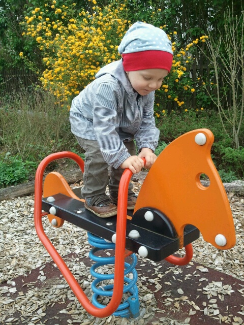 Aber seit ich Jonas zu alt für die Lumichmütze bzw. meine abgewandelte Lumichmütze finde, trägt er jetzt Beanies. Meinen ersten Versuch findet Jonas zwar super (da er "su `leiche" Schuhe hat), aber ich finde das Bündchen etwas zu schmal, weswegen die Mütze nicht so schön im Nacken fällt.