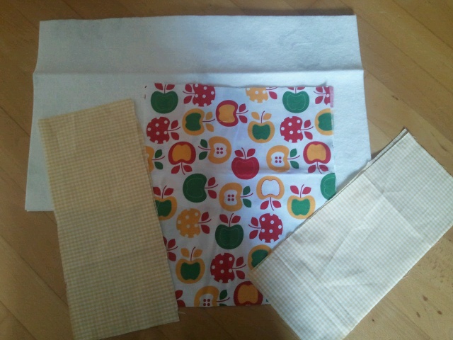 - unten der Rückseitenstoff (mit der schönen Seite nach UNTEN, die "unschöne" Seite zeigt also zum Wischtuch))