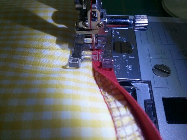 Jetzt kommt der Abschluss und das, was mir ein Gräuel ist - das Schrägband. Zum Anbringen des Schrägbandes gibt es viele Tutorials im Netz. Deshalb hier nur kurz, welche Dinge ICH persönlich wichtig finde, damit alles klappt und am Ende schön aussieht: