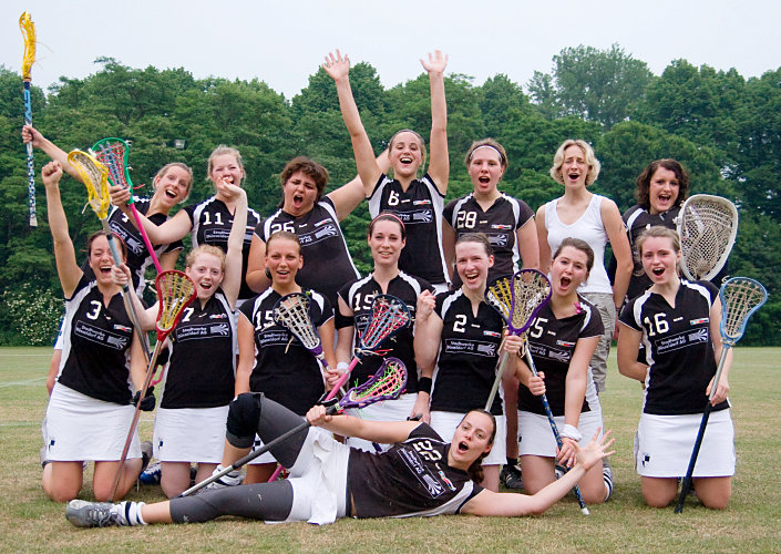 | | Für das Frauenteam der Düsseldorf Antlers (DSC 99) hat die Lacrosse-Saison 2007/08 der Bundesliga Süd doch noch ein versöhnliches Ende gefunden. Mit einem klaren 16:2-Sieg wurde die Mannschaft des KKHT Schwarz-Weiß Köln (Cologne Indians) auswärts geschlagen. Damit beenden die Damen aus der Landeshauptstadt die Spielzeit mit 19 Punkten und 134:163 Toren wie schon im Vorjahr auf dem sechsten Tabellenplatz. Die Fotos zum Spiel gibt es wie immer in der Galerie.