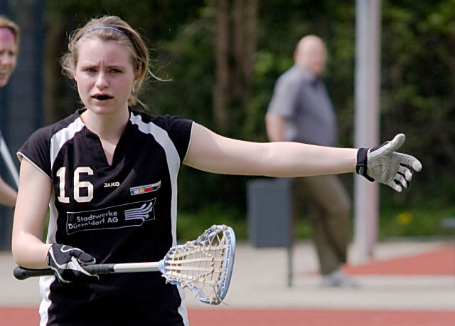 | | Mit einem überlegenen 12:4-Erfolg haben die Lacrosse-Herren des DSC 99 die Cologne Indians nach Hause geschickt. Unbeeindruckt vom permanenten Nieselregen - im Gegensatz zu mir, ich hatte da schon etwas Sorge um meine Kamera - waren die Düsseldorf Antlers von Beginn an die bestimmende Mannschaft und ließen den Gästen aus der Domstadt kaum eine Chance. Die Tabellenführung in der Bundesliga West verteidigte das Team von Trainer Florian Kriependorf erfolgreich und nimmt weiter Kurs auf die Play-Offs.